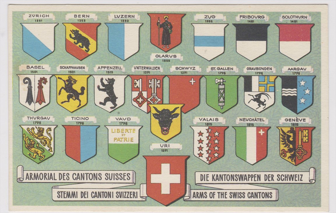 I recently came back from a vacation in France during which I also spent a little time in the Confœderatio Helvetica, more commonly known as Switzerland (derived from Schwyz, the leading of the three founding cantons at the time of the confederation in 1291). It is a country that does not have a monarchy and yet where heraldry runs rampant (pardon the pun) thus giving the lie to the notion that heraldry is an antiquated idea associated with outmoded forms of government, like elitist monarchies. Elitism and monarchy do not necessarily go hand in hand. The Swiss have survived for centuries without a monarch and yet have managed, nonetheless, to become quite elitist!