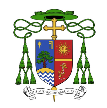 The coat of arms of newly ordained and installed Bishop Michael Barber, SJ of Oakland who was ordained a bishop and installed at the Cathedral of Christ the Light in Oakland today. The charge in chief of the personal arms is the insignia of the Society of Jesus to which the bishop belongs and which also features prominently in the arms of the pope who appointed him. The bishop also served as a US Navy chaplain. Hence, the anchor.