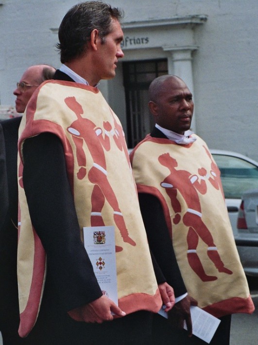 The two heralds from South Africa (wearing tabards made for the occasion) attending the XXVII International Congress of Genealogical & Heraldic Sciences which was held in 2006 in St. Andrews, Scotland. Marcel van Rossum, the Assistant National Herald of South Africa is on the left and the National Herald of South Africa, Themba Mabaso, is on the right.