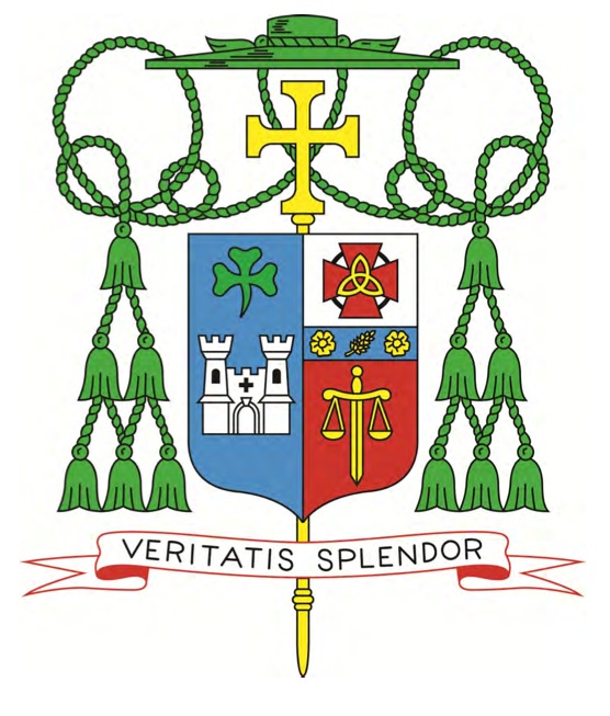 UPDATE: The only image I was able to obtain so far of the Archbishop’s arms impaled is in black and white. As one commenter on this post has already pointed out there have been slight changes made to the arms of the archdiocese.