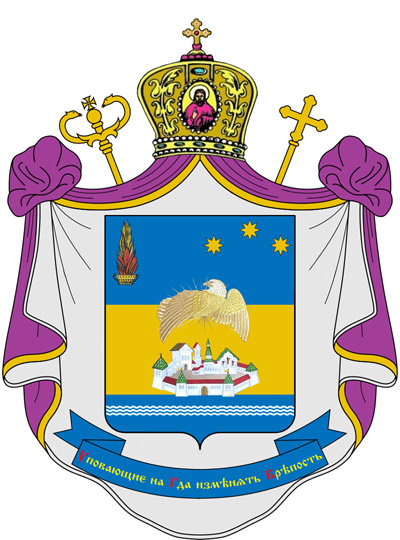 Speyer (Quarterly 1&4 Azure a cross throughout Argent; 2&3 Gules a crozier in bend Or debruised by a two towered castle Or) overall on an escutcheon Gules on three piles issuant in base Argent a lion passant crowned Or (Schönborn) and below the shield on another shield Argent the cross of the Teutonic Order. Supporters: Two lions affronteé crowned Or, armed and langued Gules each supporting a banner, to dexter of the Empire and to sinister of Austria