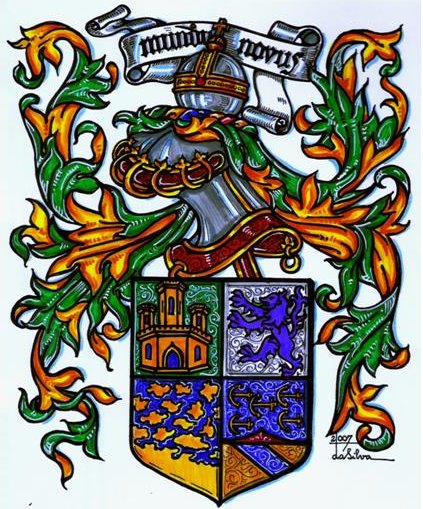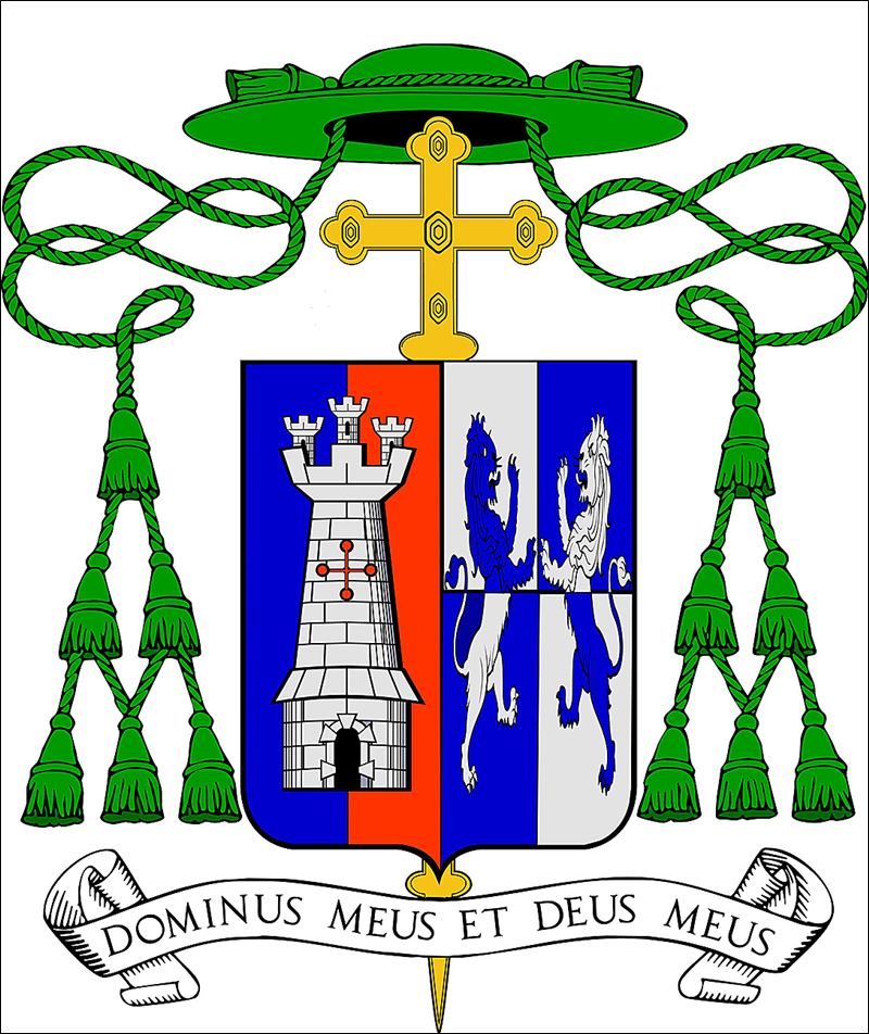 Quarterly, 1&4 per pale Aragon, Hungary, Anjou (ancient) and Jerusalem; 2&3 Grand Quarterly 1&4 Azure, a triple towered castle Or, a bordure compony Argent & Gules; 2&3 Bendy Or and Gules quartering per fess Or and Gules a lion rampant Counterchanged.