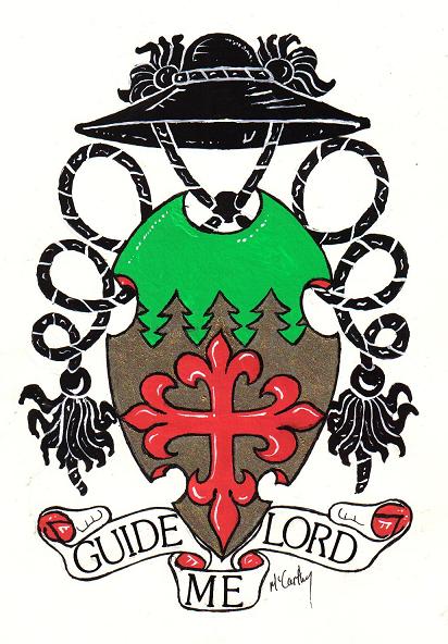 The personal arms were designed by me and Mr. Richard d’Apice of the Australian Heraldry Society and originally emblazoned as well as marshaled with the arms of the diocese and emblazoned again by Mr. Sandy Turnbull also of the Australian Heraldry Society.
