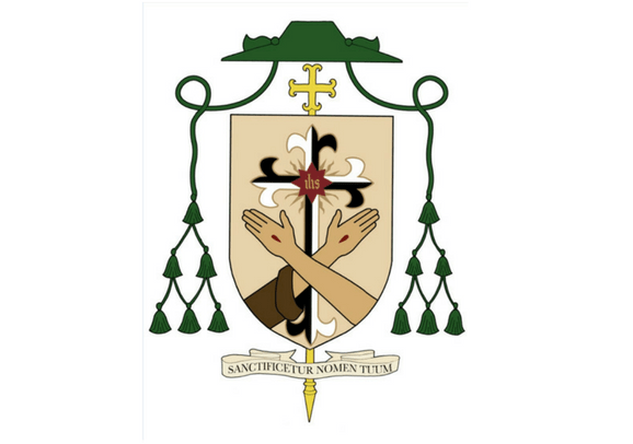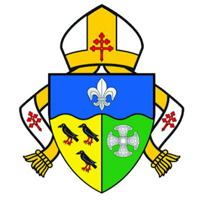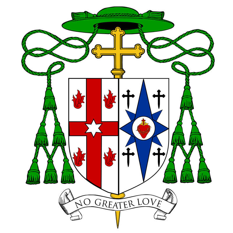 The archbishop employs the archdiocesan arms pictured below. They follow the more ancient custom in Britain of ensigning the shield with a bishop’s mitre rather than the more continental galero.