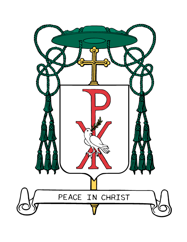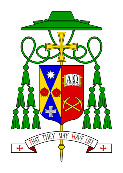 The diocesan arms were designed by myself and Bishop Shane’s personal arms were designed by Richard d’Apice AM KCSG and myself and both are illustrated by Sandy Turnbull.
