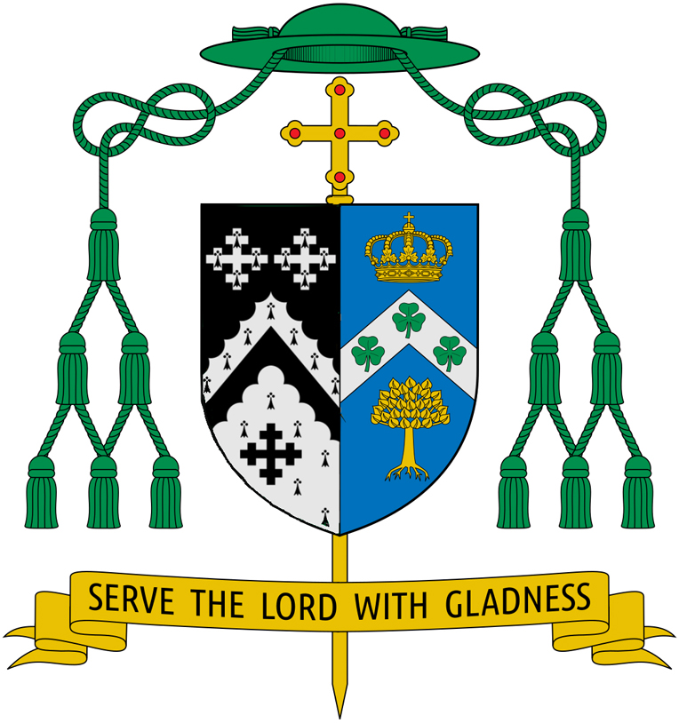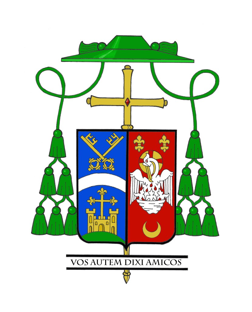 The coat of arms he assumes now is his personal arms alone which will, in due time, be impaled with those of the Diocese of Peoria after he succeeds to the See.