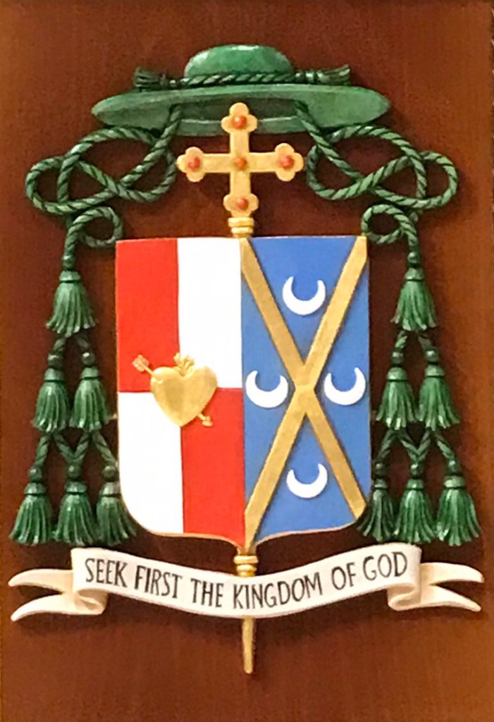 For his motto, Cardinal McElroy has selected the phrase “DIGNITATIS HUMANAE” (Of the Dignity of the Human Person) which is also the title of the Second Vatican Council’s “Declaration on Religious Freedom”.