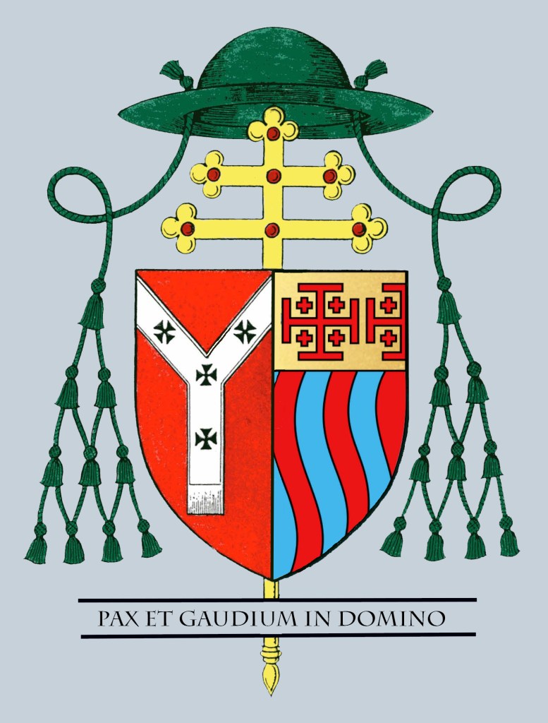 His episcopal coat of arms which he has used since his episcopal ordination in 2009 will be impaled with the arms used by the See of Westminster which itself has undergone several minor changes over the years but which has consistently appeared in its present form since the tenure of Cormac Cardinal Murphy-O’Connor. The College of Arms will create a divisal of arms for a Catholic bishop but the Catholic dioceses in England and Wales are not considered bodies corporate of law and so they do not receive grants of Arms from HM College of Arms. (Lord Lyon has granted arms to all the Catholic dioceses in Scotland and will grant arms to a Catholic bishop.)