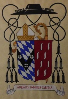 As I said, Archabbot Douglas was happy to follow my advice in this regard. I noted on one of my subsequent visits to the Archabbey that the display of archabbatial coats of arms in the Archabbot’s outer office included a new rendering of Archabbot Douglas’ coat of arms with the veiled crozier omitted. It could be that there was simply an effort to have his coat of arms artistically conform to the pattern followed by his two immediate predecessors. One also is moved to wonder, however, if the person responsible was simply acting in ignorance? It would be hoped that the move was not a deliberate one. If it were, it would constitute an action displaying the most blatant ignorance of commonly accepted heraldic practices in the Church as laid out in the excellent and scholarly work of the late Bruno B. Heim, Heraldry in the Catholic Church, as well as in several other similar publications. In other words, don’t take my word for it! It’s verifiable independently of my opinion. In fact, my collaborator on this project for Archabbot Douglas, Dr. Grosschmid, was a close friend and collaborator of Archbishop Heim who was widely accepted as the foremost expert in Catholic ecclesiastical heraldry of his day. Dr. Grosschmid concurred with my assertion that the Archabbot’s coat of arms should employ the veiled crozier which is why I felt so comfortable advising the Archabbot in that way.