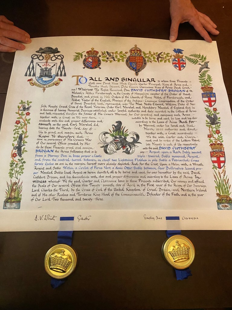 Last week, Dom Cuthbert received his grant of arms and it is magnificent!