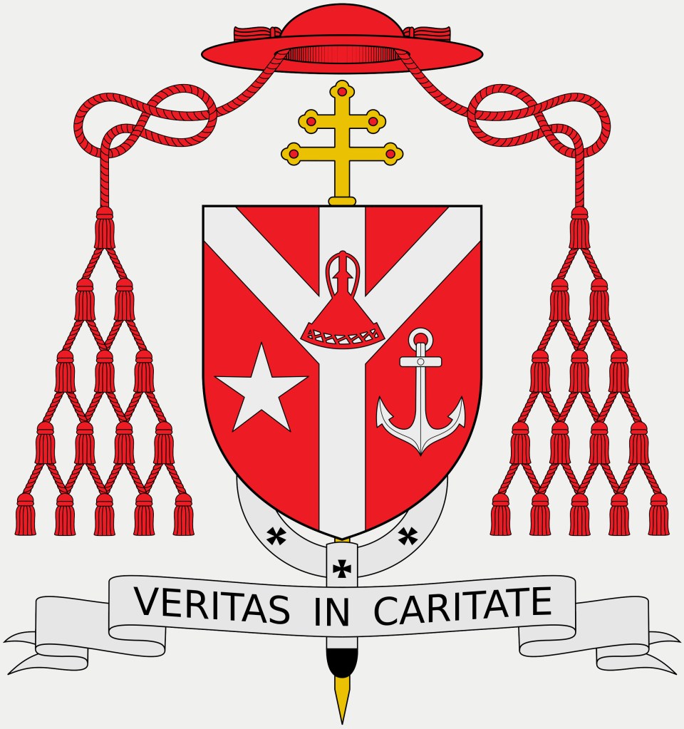 For his motto, Cardinal McElroy has selected the phrase “DIGNITATIS HUMANAE”  (Of the Dignity of the Human Person) which is also the title of the Second Vatican Council’s “Declaration on Religious Freedom”.