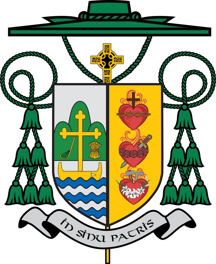 Bishop Battersby’s Coat of Arms includes the three Sacred Hearts. The hearts represent the Holy Family and symbolize the unending and boundless love for us. The wounded heart signifies his devotion to the Sacred Heart of Jesus. It also pays tribute to Sacred Heart Major Seminary where he prepared for the priesthood and at which he served as vice-rector and dean of seminarian formation at the time he was called to the episcopacy.