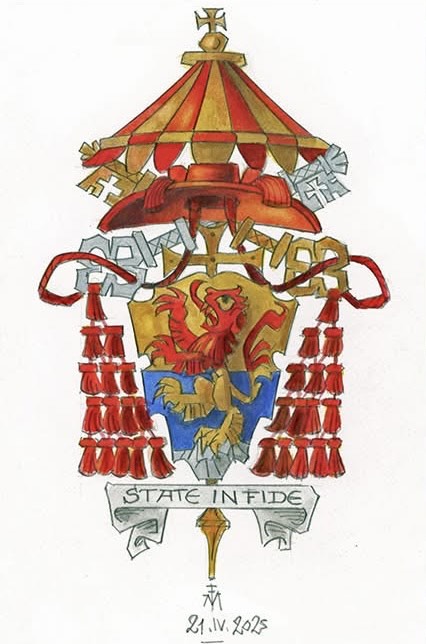 I recently saw online that he posted about some modifications to the ornamentation of his arms reflecting the fact that he has recently been named a Canon of York in the Church of England. So the galero now has six red tassels pendant on either side.