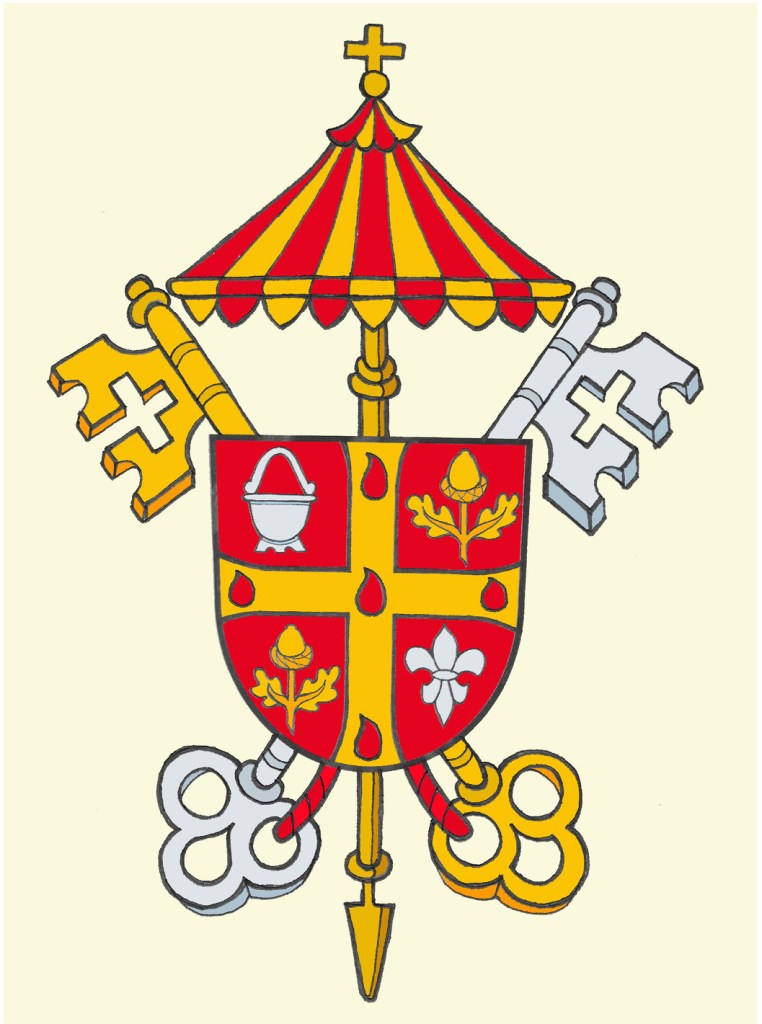 Pope Leo already had a very good coat of arms as a bishop. I’m glad to see he didn’t feel the need to entirely change the design as others have done in the past. A coat of arms is a means of identification. It identifies you. It becomes associated with you in such a way that it shouldn’t be changed cavalierly. A change of position should warrant the use of different external ornaments to signify the new rank, not a full scale change in what is on the shield itself. So, I’m happy to see that the Pope left alone the arms that he assumed as a bishop 11 years ago.