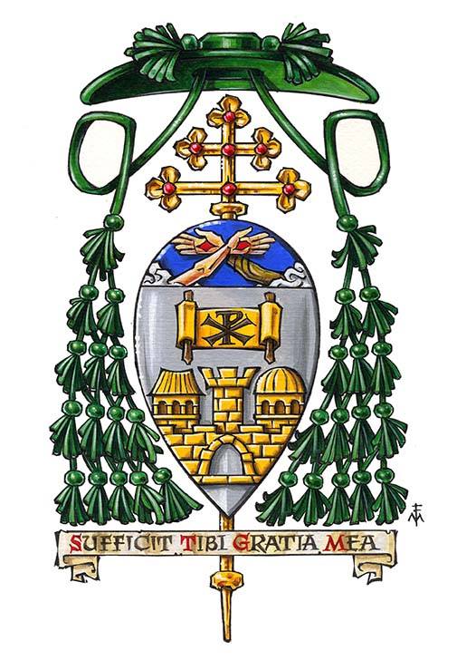 Sometimes, especially in the world of ecclesiastical heraldry, prelates aren’t always so creative and frequently they adopt arms that are very similar to each other’s. On occasion this may indicate a kind of patronage of one prelate over another. For example, St. John XXIII’s longtime secretary, Loris Capovilla, was later made an Archbishop and eventually a Cardinal. At the time of his episcopal ordination he adopted John XXIII’s coat of arms entirely with one tiny exception; he removed one of the fleur-de-lis in order to “difference” his arms from his patron.