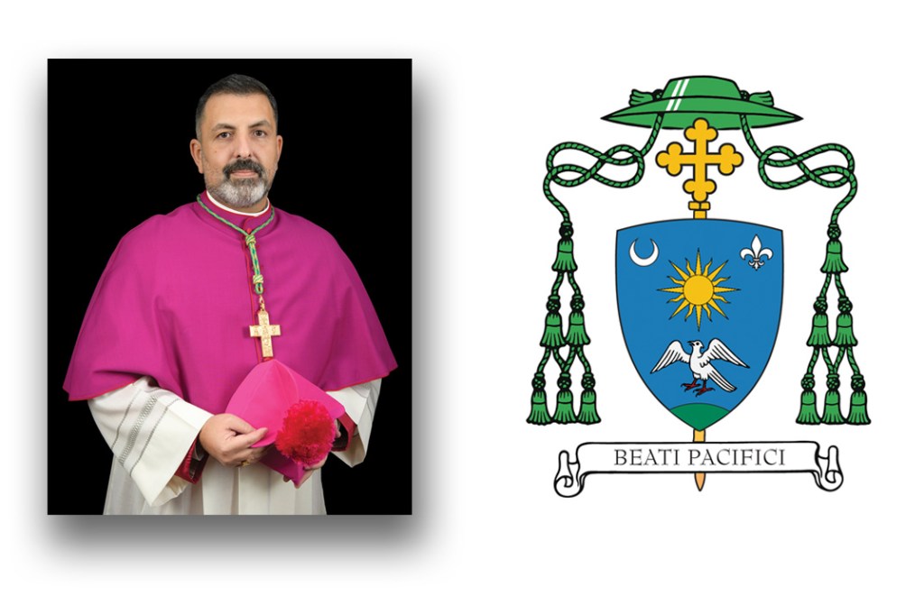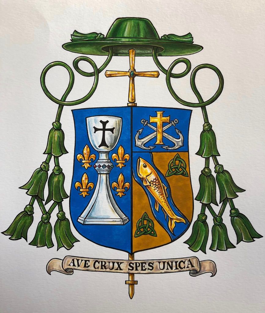 “Bishop Leo’s coat of arms is drawn from four principal aspects and devotions of his life and ministry, and is depicted on the shield in four quarters.